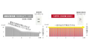 「海外製だから200ボルトなんですよ」などど意味不明の揶揄をされることもありますが、当社では、100ボルト機、200ボルト機など多彩な製品を製造しています。業務用脱毛機PEGASUS PROで200ボルト電源にこだわっているのは、200ボルトでしかできない「大電力供給」が、出力の安定性や確実な脱毛のみならず、(ここの説明は難しいですが)「脱毛機の安全運用」にも大きく関わっているからです。最大で4000ワット(200V x 20A = 4000W)を供給可能な200ボルト電源がなぜ必要なのか、こちらでご説明していますのでぜひご覧ください。